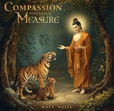 In the Jataka tale of the Starving Tigress, the Bodhisattva embodies boundless compassion and perfect generosity. By offering his own life to save a mother and her cubs, he reveals that true awakening grows from selfless love—free from fear, attachment, and self-interest.