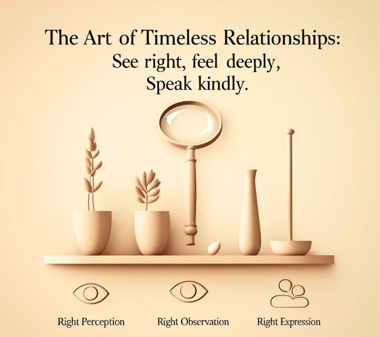 What makes a relationship truly last? This heartfelt reflection explores the three golden keys to lasting connections—Right Perception, Right Observation, and Right Expression. With real-life wisdom and deep emotional insights, it reminds us that no bond is perfect, but love becomes timeless when we see clearly, feel deeply, and express kindly.